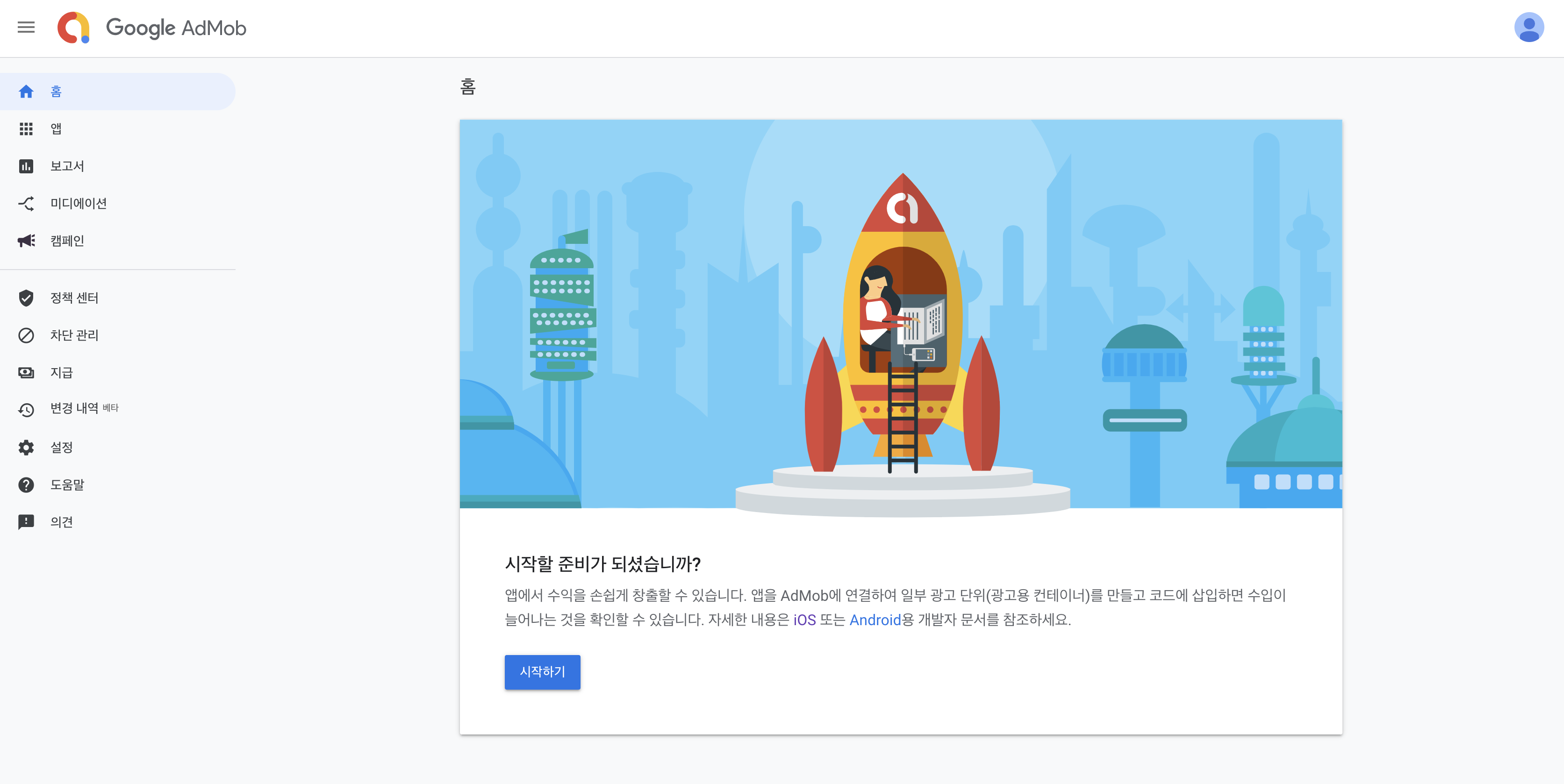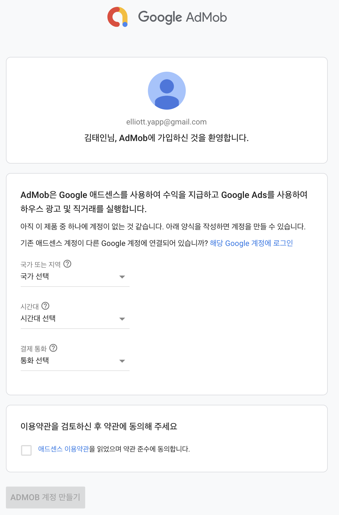 본격적인 광고 탑재에 앞서 Google AdMob에 계정을 생성하고 광고 단위를 생성해야 합니다.
