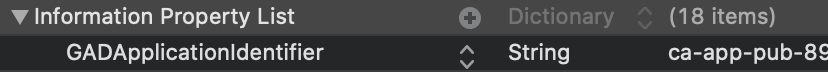 앱의 Info.plist 파일에서 AdMob 앱 ID의 문자열 값이 포함된 GADApplicationIdentifier를 추가하시면 됩니다.