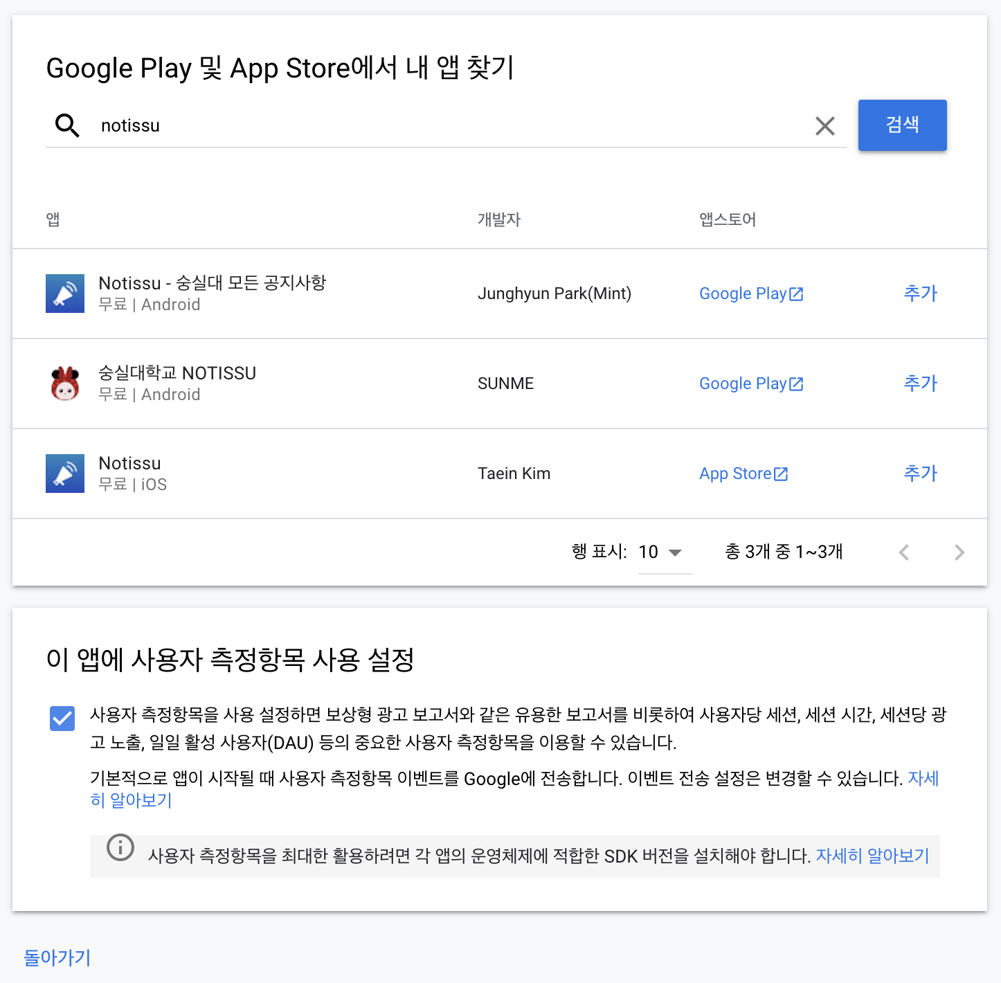 저는 앱이 존재하기 때문에 제가 기존에 출시한 App을 검색한 결과 아래와 같이 검색을 통해 추가할 수 있습니다.