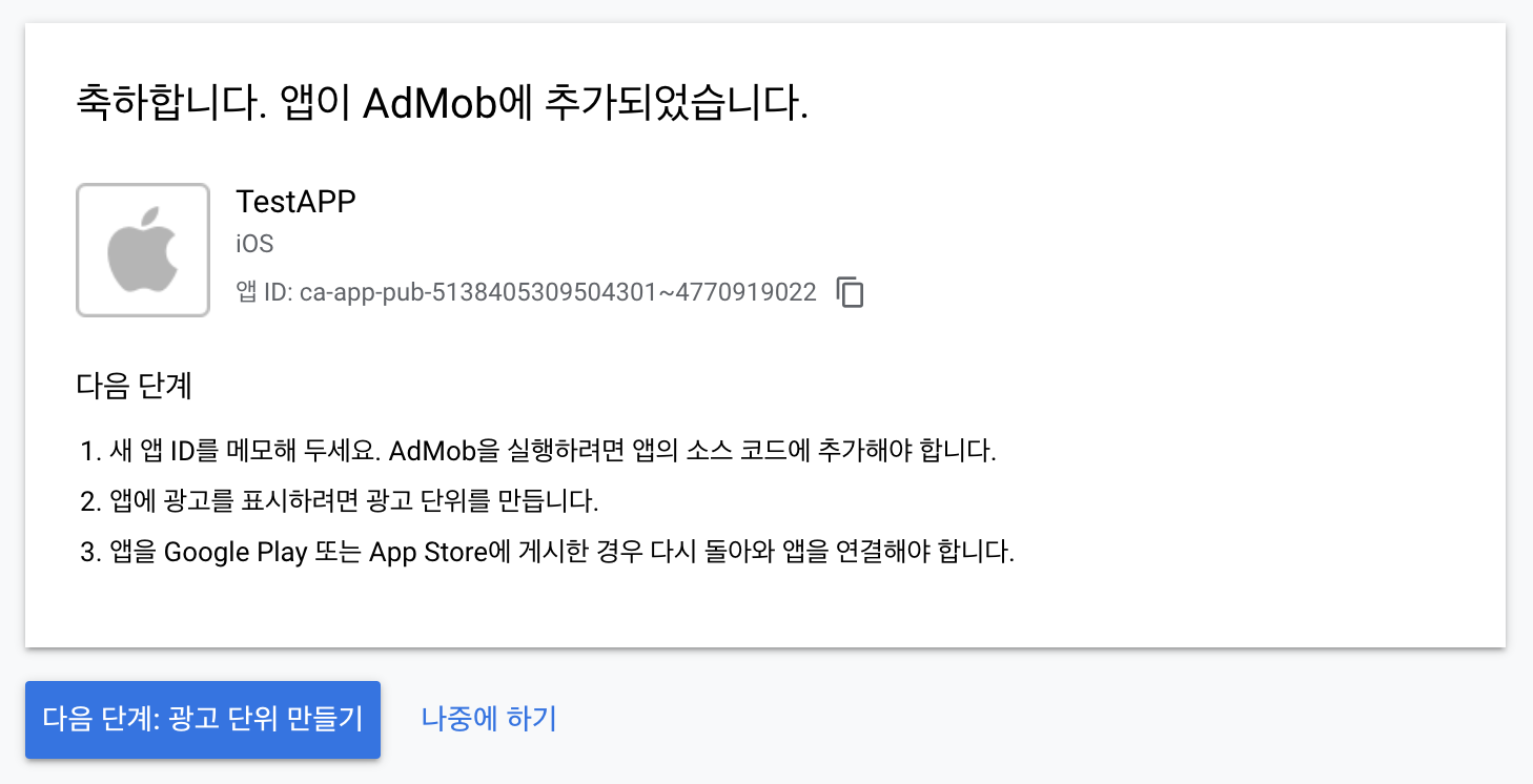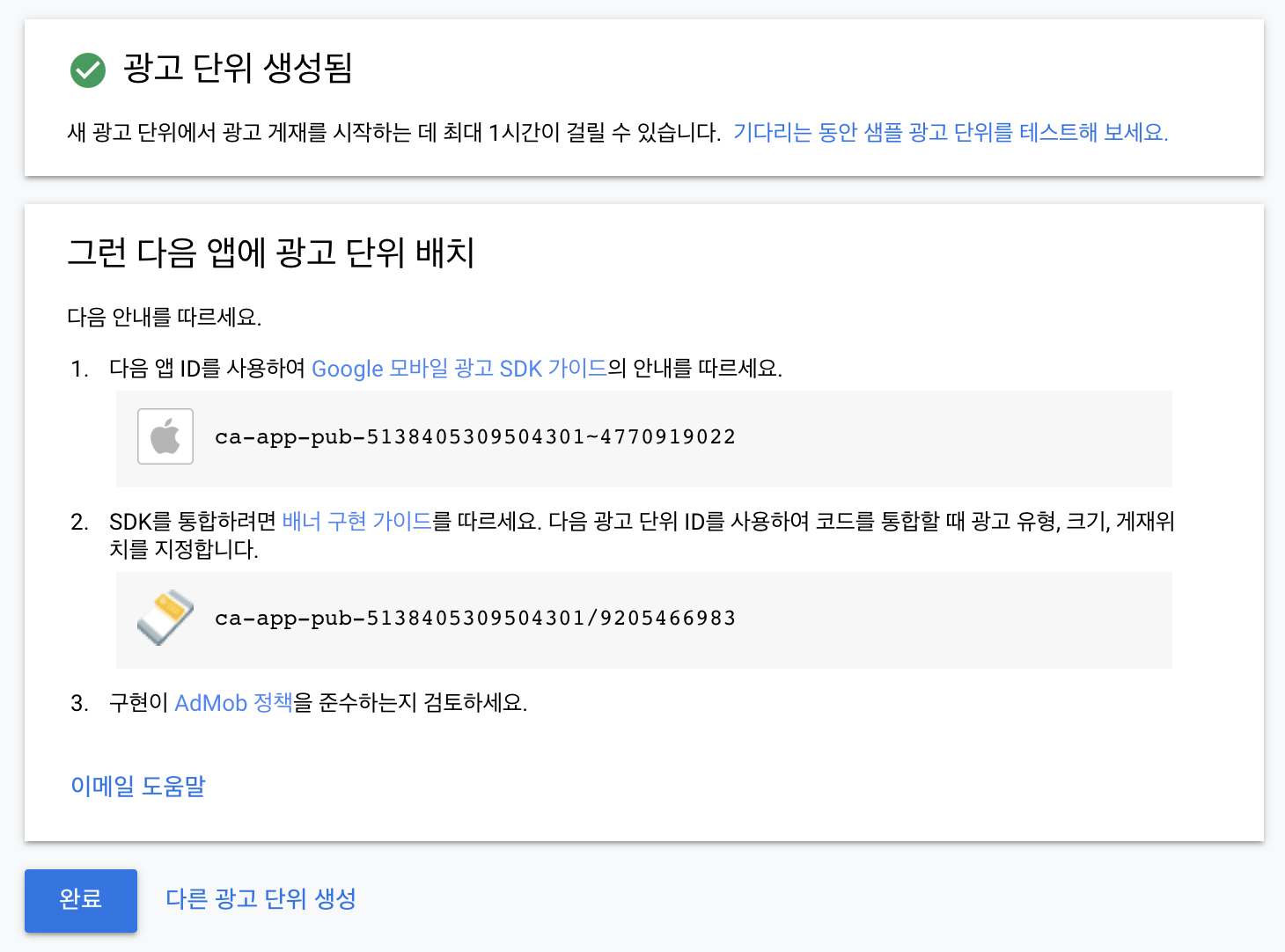 앱도 생성하였고 이제 광고 단위를 만들어서 실제 앱에 광고를 추가해보도록 하겠습니다.