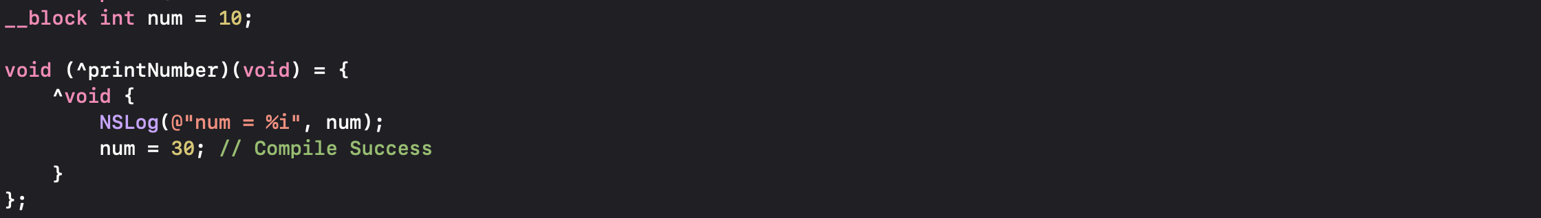 void (^printNumber)(void) = {