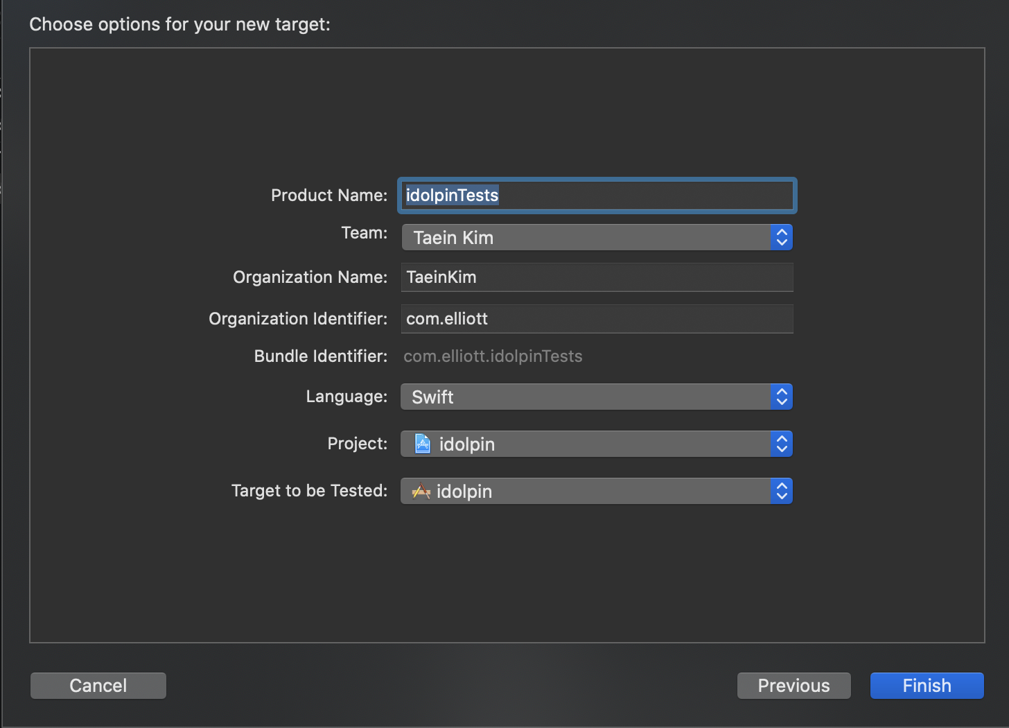 New Unit Test Target을 누르면 아래와 같은 화면이 나옵니다.