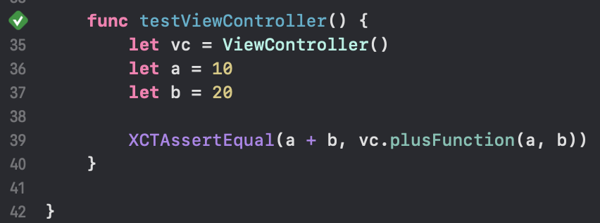 XCTAssertEqual(a + b, vc.plusFunction(a, b))