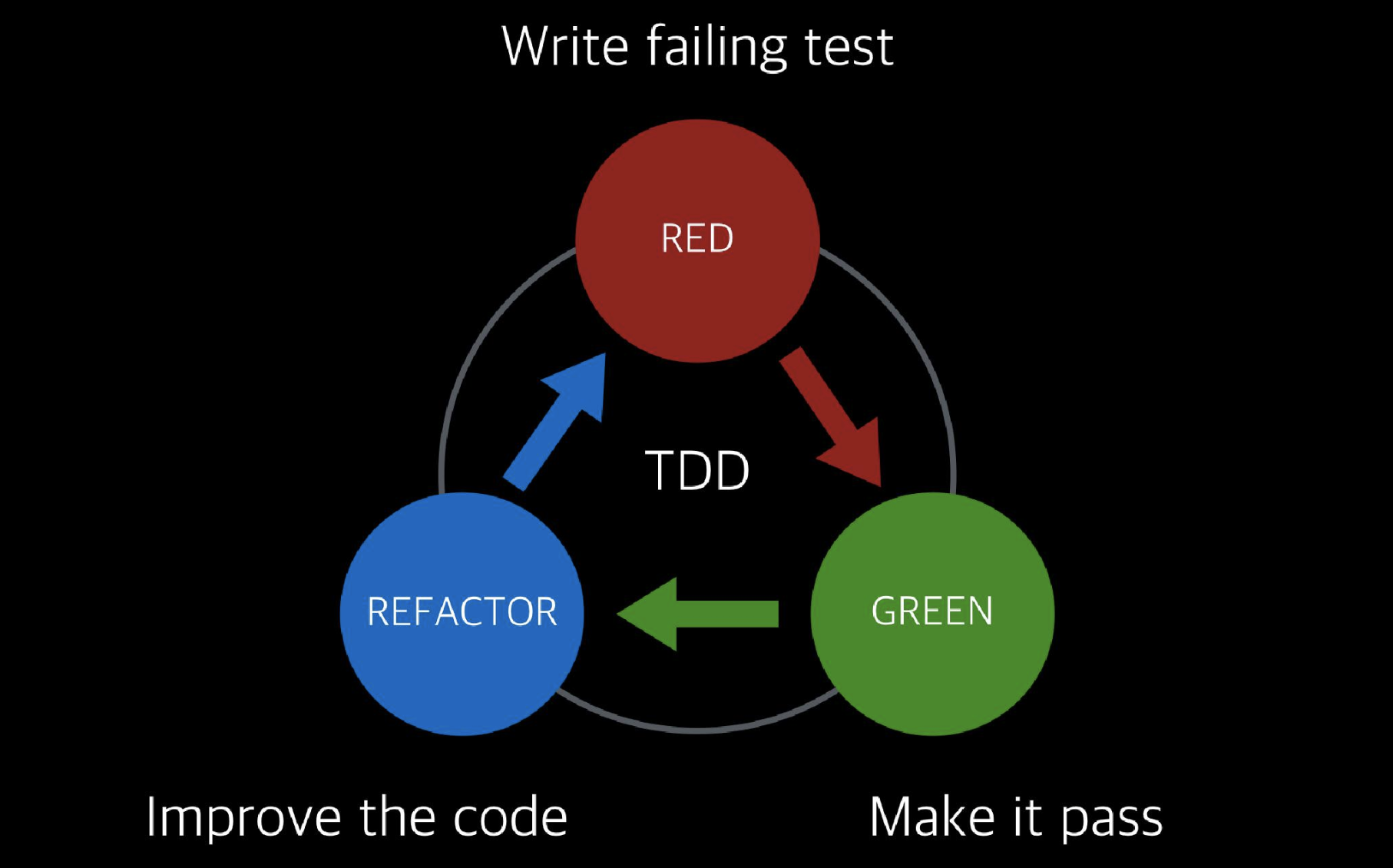 TDD는 실패하는 테스트를 작성하고(red), 작성된 테스트를 통과하는 코드를 작성한 후(green), 작성한 코드를 리팩토링하는(refactor) 세 단계를 거칩니다.